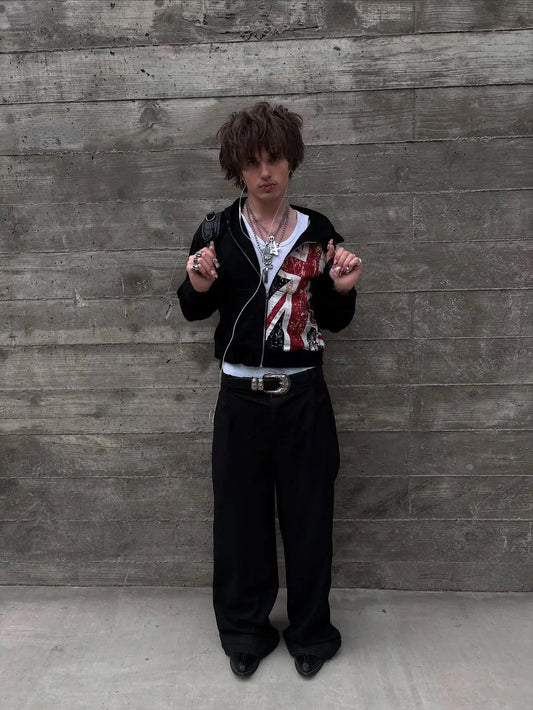 British flag printed cardigan hooded fashionable solid color oversized sweatshirt Y2K Harajuku Hip Hop Gothic casual clothes