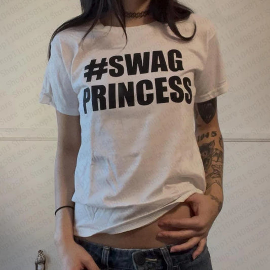 Aesthetic Kawaii clothing retro women's 90s cut top women's baby letter T-shirt Y2k fashion casual 2000s top emo girl Harajuku