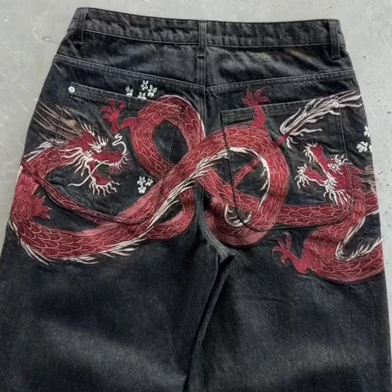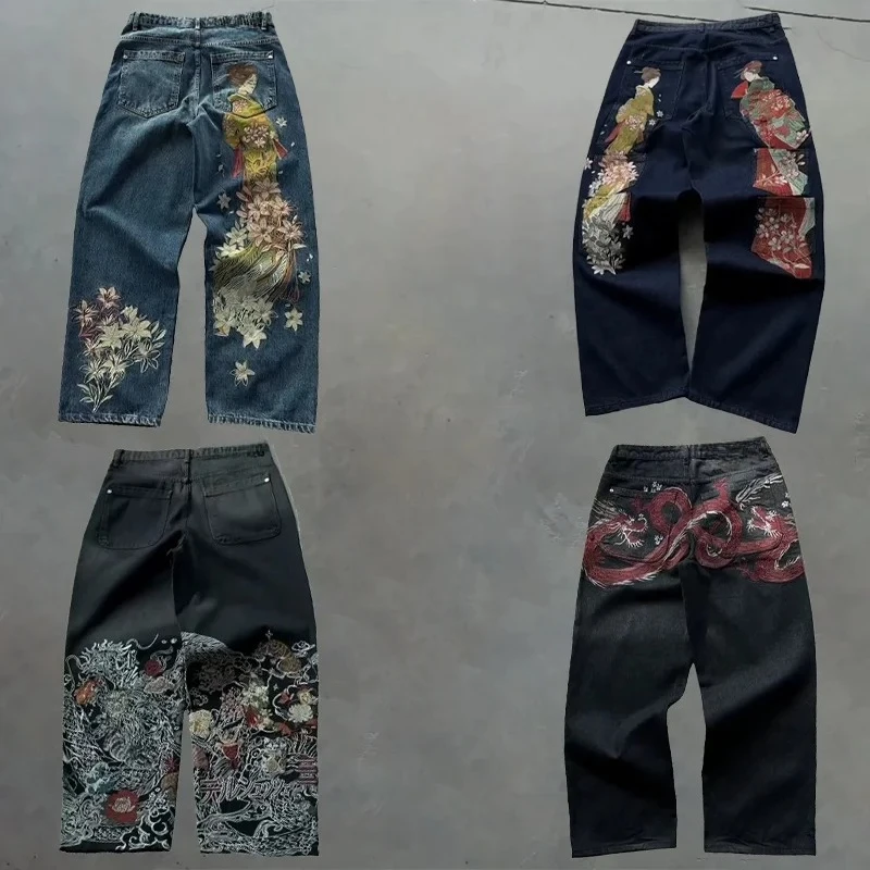Y2K Baggy Jeans men vintage Embroidered high quality denim fabric American style jeans Gothic streetwear Hip Hop wide leg pants