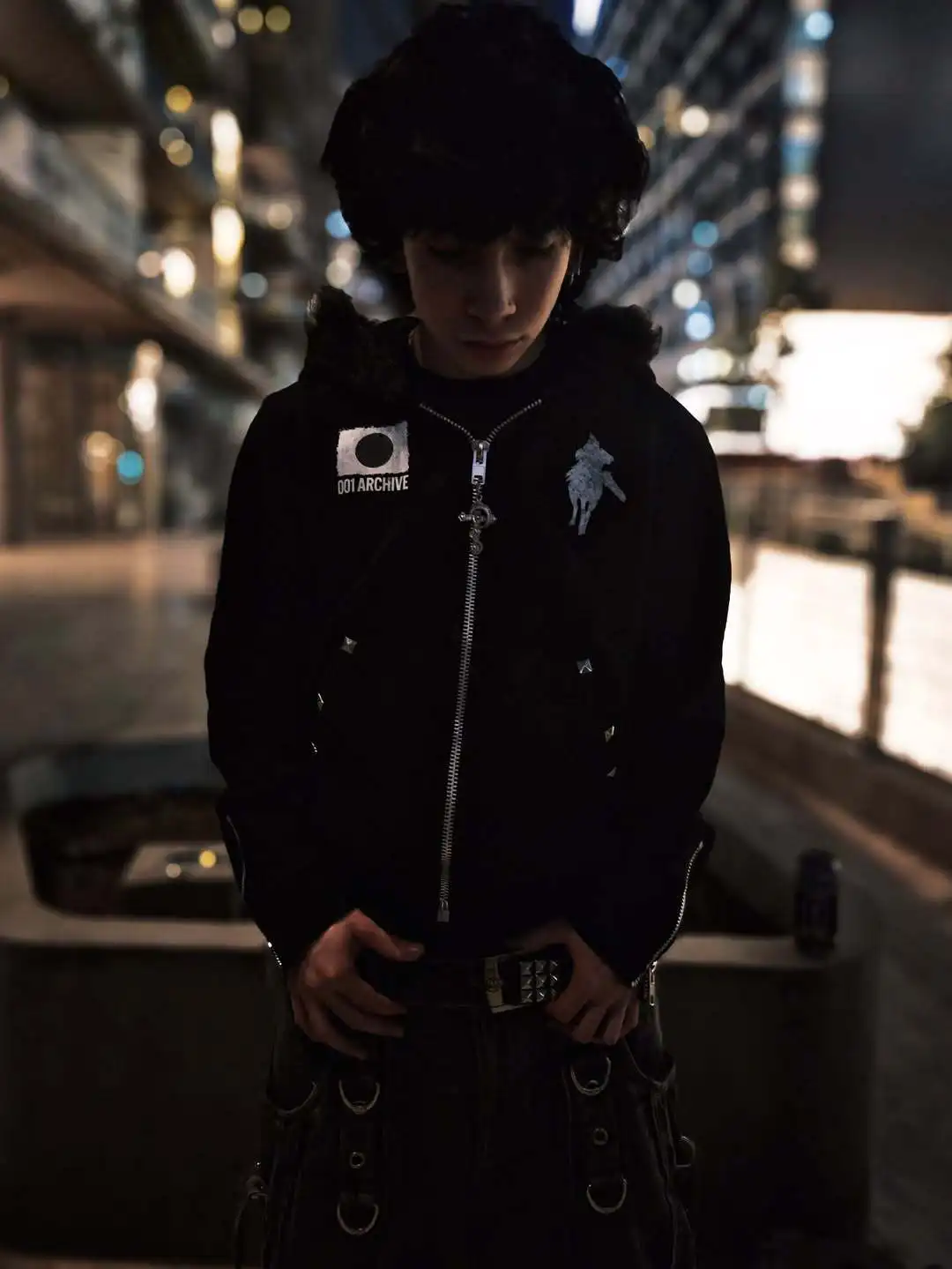 Y2K Japanese Harajuku streetwear European youth rivet fashion wool pullover men's urban casual hooded hip-hop printed sweatshirt